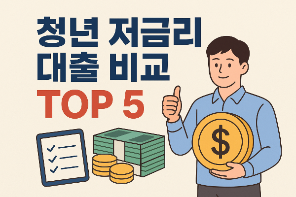 아래 표는 2025년 기준 청년 저금리 대출 TOP5와 월 상환액, 총 이자, 정부 지원금을 계산한 예시입니다.
